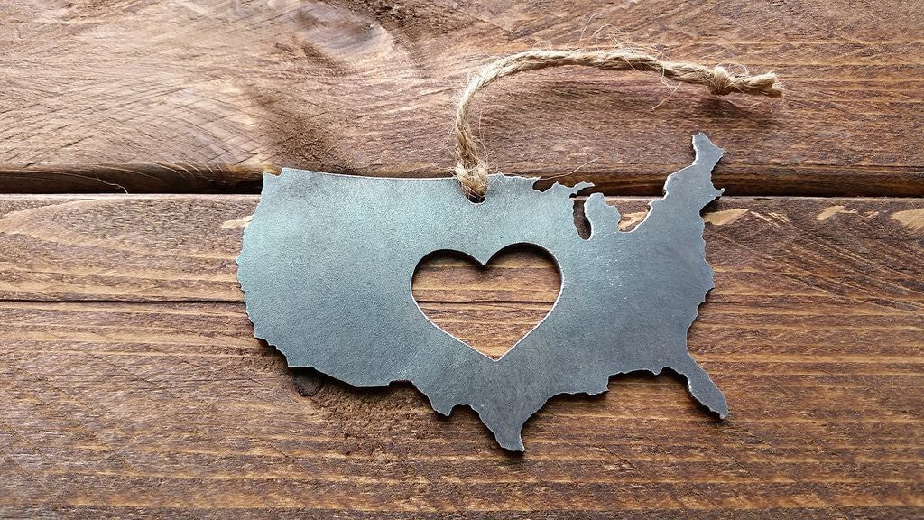 BE Creations & Designs, Inc. - United States of America Rustic Steel Ornament with Heart