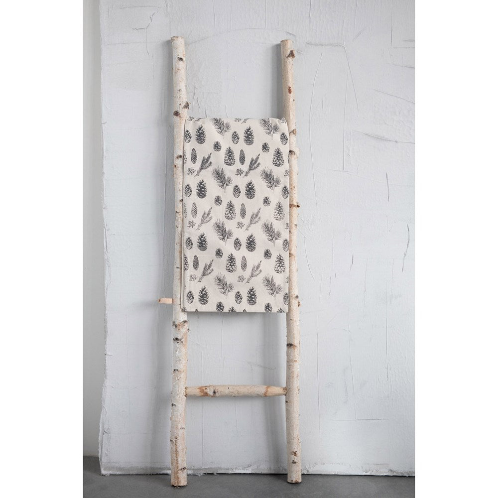 72"L x 14"W Woven Cotton Printed Table Runner w/ Pinecone, Brown & Cream Color